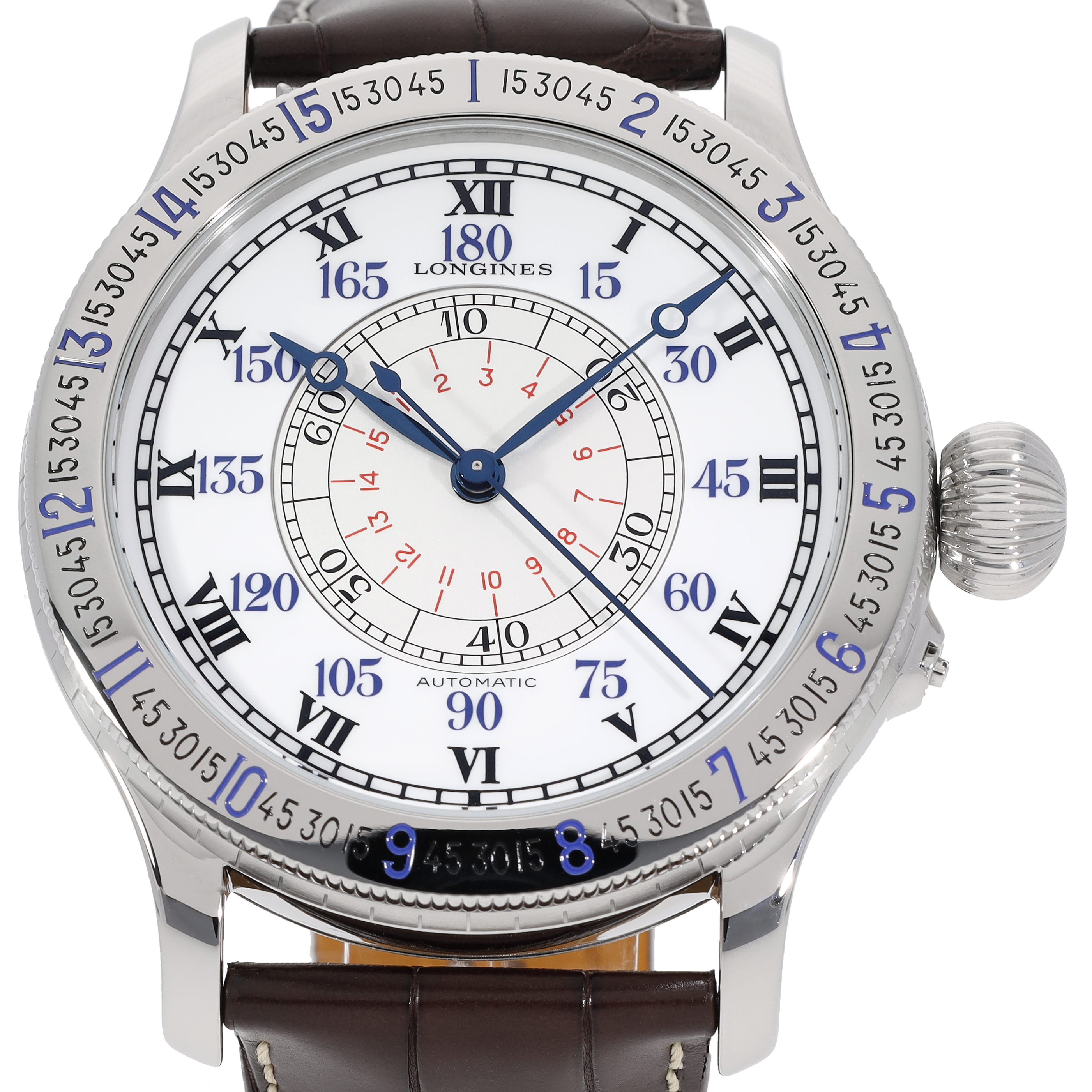 Grund genug für den Schweizer Uhrenhersteller eine Longines Uhren Kollektion zum Jubiläum aufzulegen. Das Gehäuse dieser Uhren besteht aus Titan. Darin arbeitet ein Automatikwerk Eta A07.L01. Nur 90 Exemplare mit braunem Lederband wurden hergestellt. Fliegeruhren waren für Longines der Beginn der glorreichen Ära für die Herstellung von Uhren.